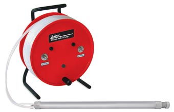 They are supplied on a free-standing reel. The rugged systems are very convenient and easy to transport. Tubing fittings on the reels and controller are compression fittings, allowing quick set up in the field. The Solinst Model 103 Tag Line can be used to lower and support the pump in the well (See Model 103 Data Sheet).